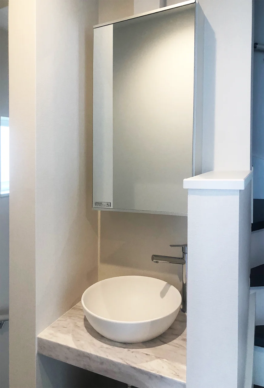 - リビング階段・オープンキッチンの3階建の家
