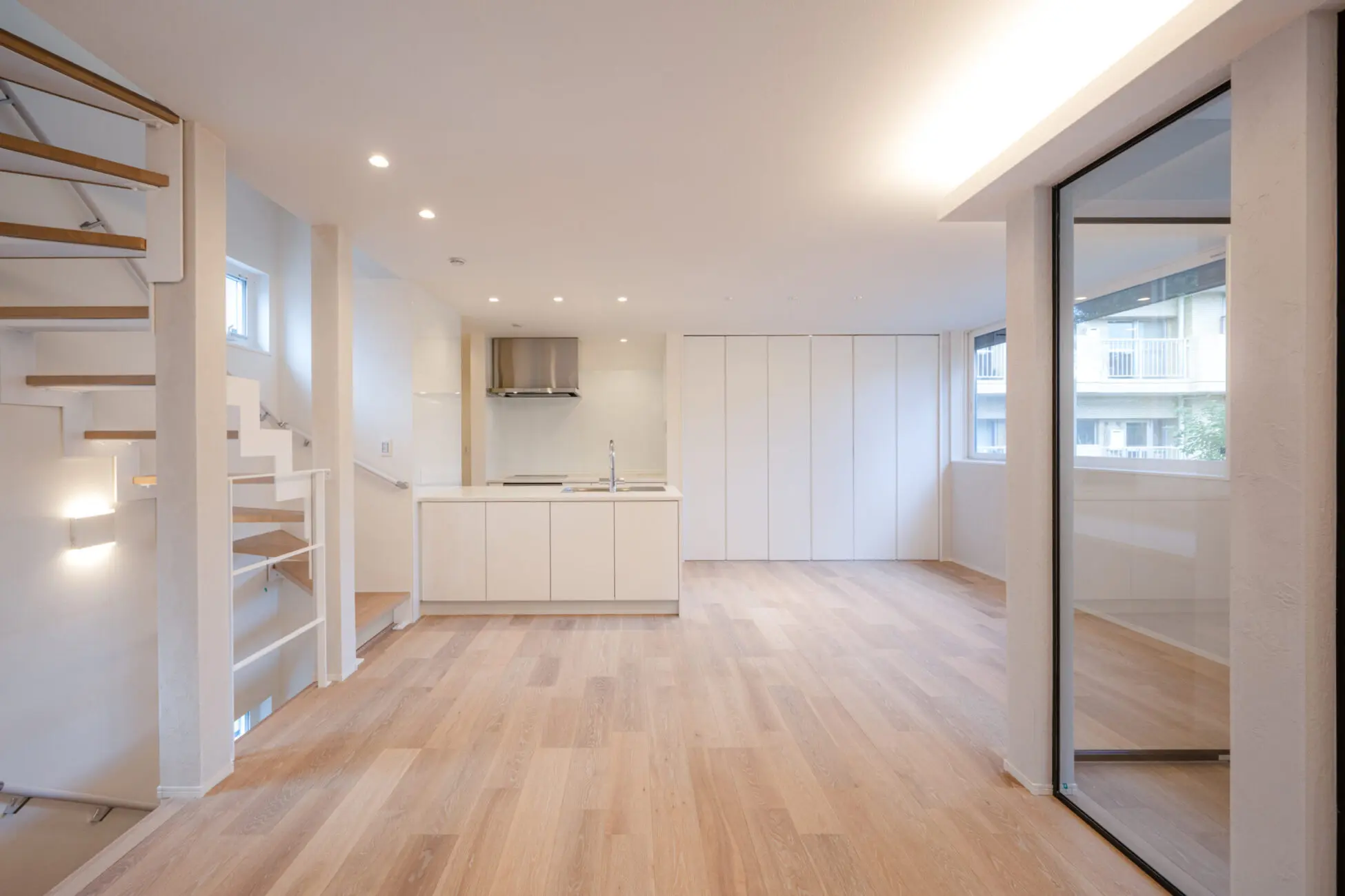 ホワイト基調の一日通して明るいLDKの家