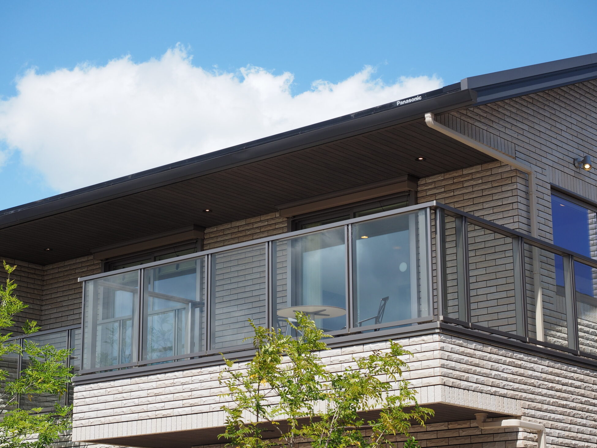 まず紹介するのは、狭小地に建てられた2階リビングのある住宅です。狭小住宅にありがちな「窮屈そう」や「狭そう」といったイメージも、2階にリビングを配置すればうまく解消されます。この事例では屋根なりの勾配天井を取り入れ、縦の空間を活かした開放的なリビングを実現しています。縦に開けていると空気が一部に滞留しがちですが、シーリングファンを設置して空気を循環させているのも見逃せないポイントです。